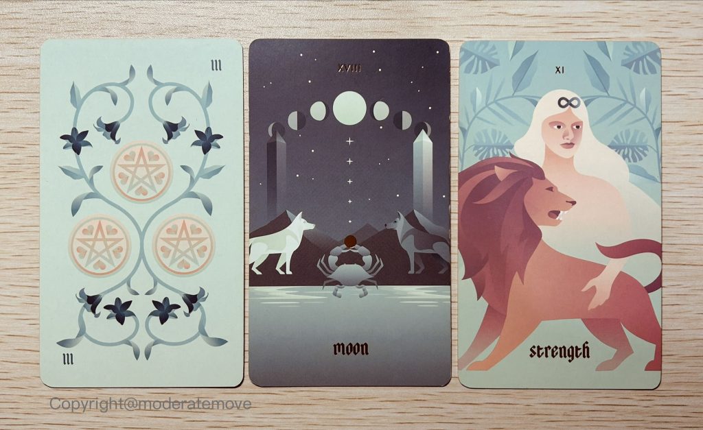 於是,為了避免這些情緒的起伏與不可掌控的狀態,我的生活逐漸遠離了「關係」這個主題。我從倒吊人的經驗中,發展出了一種自我保護的結構。三張簡單的牌,卻細緻地描繪出內在的陰影。同時,也讓我意識到:或許,我可以在這個領域中,重新練習勇敢。