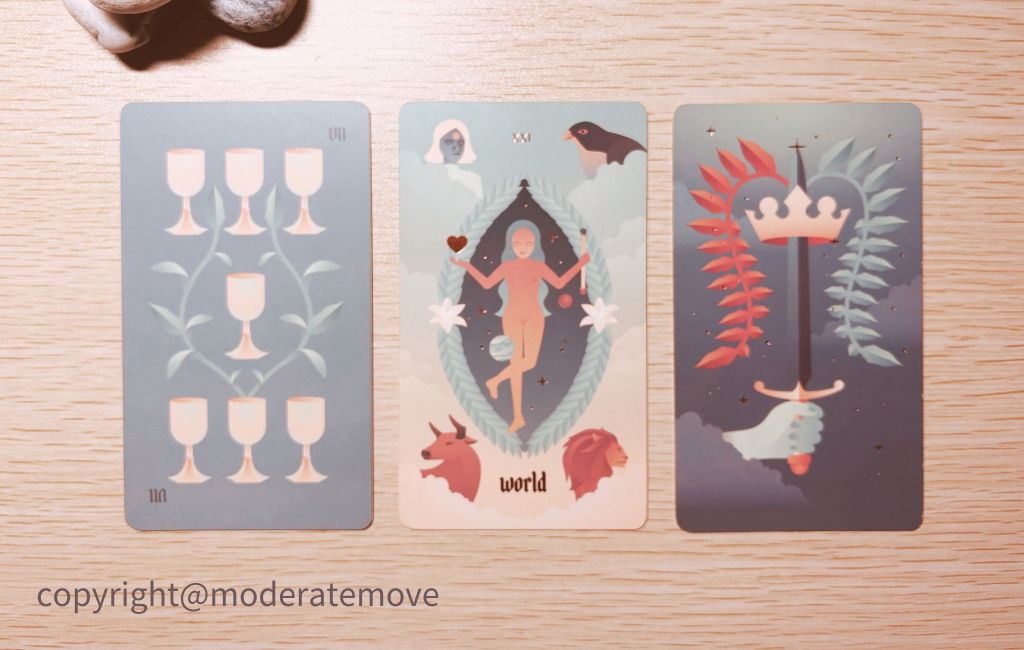 伴隨著這份沒有疆界的牌卡,時常令我覺得恐懼。擔心自己學不好、解牌錯誤。與此同時,也讓我察覺到自己的習性:這個「沒有原著」的事實,既帶來無邊無盡的自由空間,也帶來難以掌握所衍生的恐懼;兩者之間,我時常只看見恐懼,卻忽略了可饋的「自由」。同樣地,面對偉特和托特塔羅牌,我也依然擔心自己是否解讀錯誤,沒有說出「正確答案」。時常會蒐集各種書籍所列舉的牌義,深怕自己遺漏了某些重要的意思。